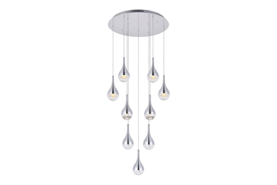 Our exquisite modern LED solid bubble crystal chandelier, a true masterpiece of contemporary design. Meticulously crafted with iron metal, this chandelier showcases a captivating arrangement of solid bubble crystals that exude an enchanting allure. With adjustable height functionality and compatibility with sloped ceilings, installation is a breeze, requiring no assembly. Emitting a warm temperature of 3000K, the energy-efficient LED lighting creates a cozy and inviting ambiance. Elevate your space with this stunning chandelier, effortlessly combining sleek iron with the mesmerizing beauty of solid bubble crystals, and immerse yourself in a realm of modern elegance and luminous warmth.