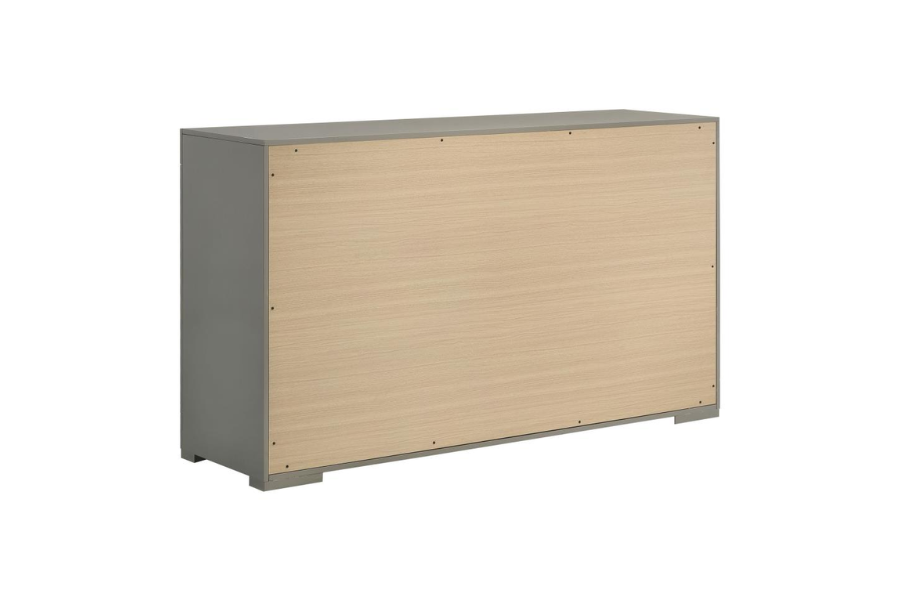 * Juego de dormitorio contemporáneo estilo oriental de cuatro piezas con cama tamaño king * Acabado gris de alto brillo con relieve de mosaico de diamante tridimensional * La cama cuenta con luz LED táctil en la cabecera. * Cómoda y mesita de noche con cajones superiores forrados en fieltro * Construido con madera maciza, madera de ingeniería y laminado de papel. |