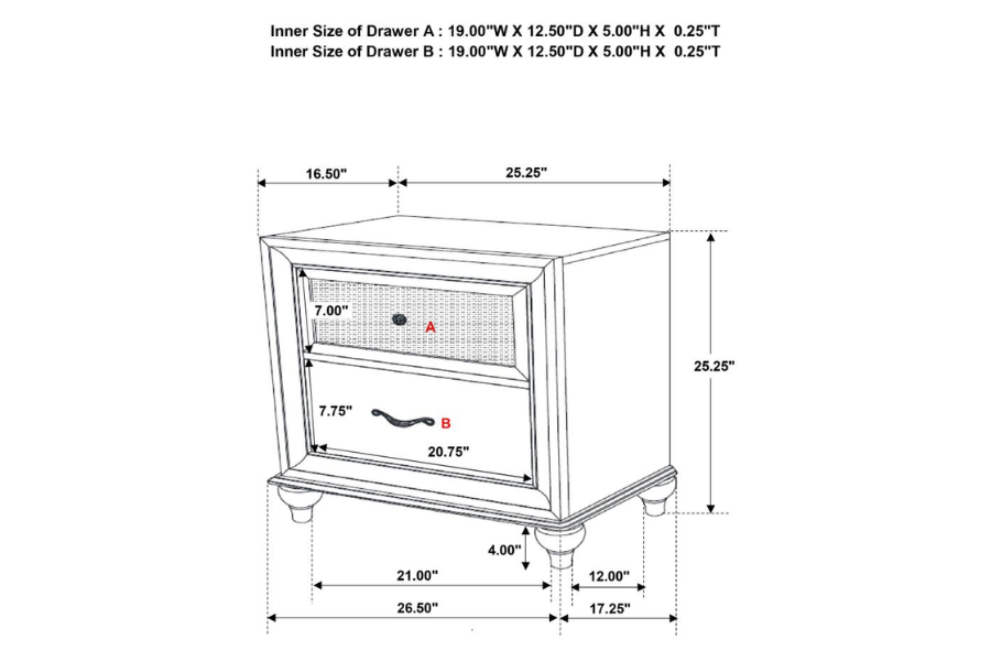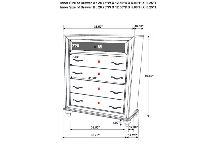 Includes: One (1) eastern king bed, one (1) nightstand, one (1) dresser, one (1) dresser mirror, and one (1) chest |