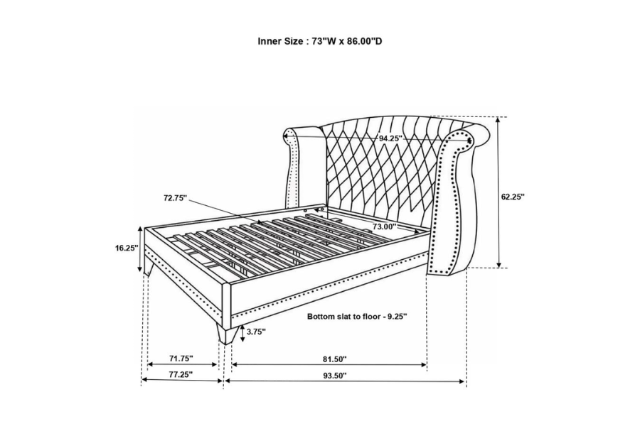 * This majestic upholstered bed in soft white velvet, accented with crocodile textured white leatherette and individually hammered silver nailheads will add a touch of elegance to your sleeping environment * Extra tall headboard detailed with beautiful crystal button tufting * White performance velvet for stress free maintenance * Constructed with solid hardwood, plywood and manufactured wood * Steel tapered chrome legs |