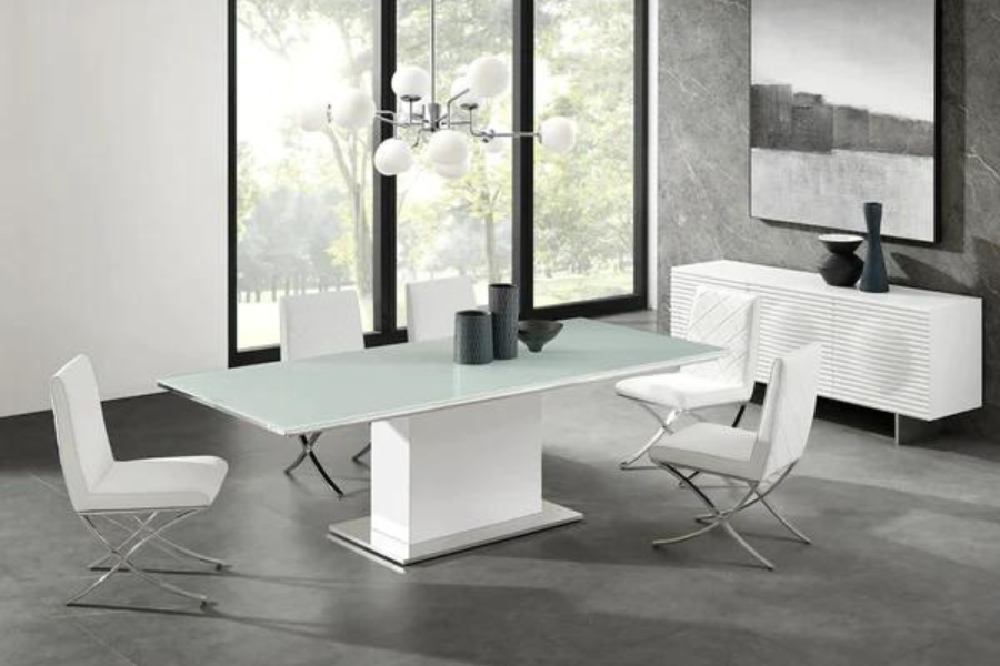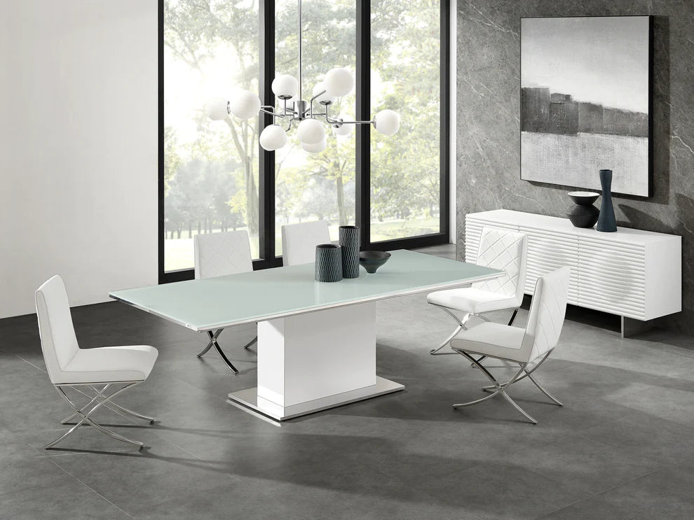 The Bianca dining table with white base and white top by Venini furniture Home provides today's home with ultra-modern luxury designs that brings a blend of sophisticated styling and modern contemporary designs into any space.
