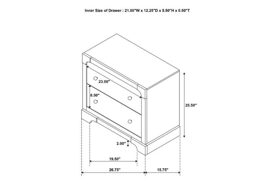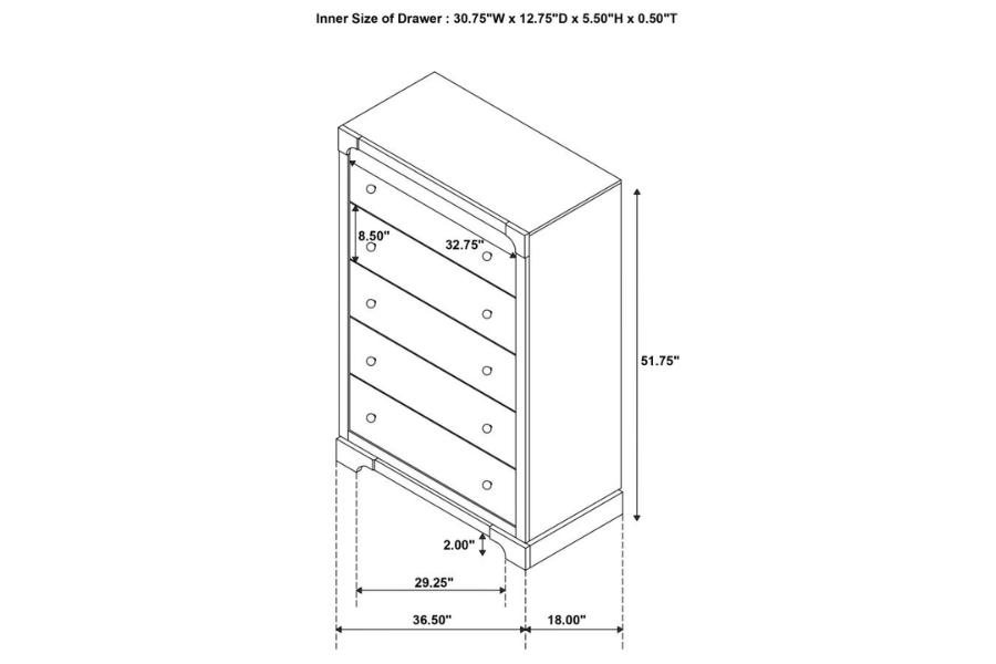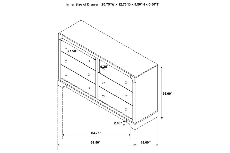 Includes: One (1) queen bed, one (1) nightstand, one (1) dresser, one (1) dresser mirror, and one (1) chest |