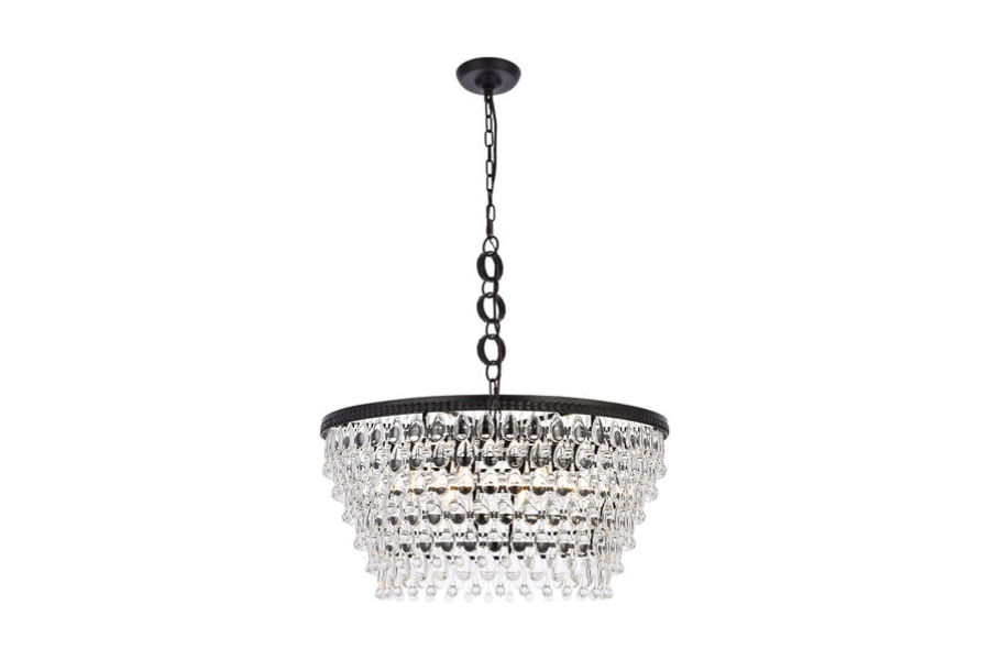 Like the sun setting on a frozen lake, this collection shimmers with tiers of icy crystals reflecting the soft glow of the candelabras. True to its Nordic namesake, the cascades of royal-cut clear crystals complement the etched brass finished frame. Suspended by an elegantly looped chain that draws the eye to the cool sheen below.