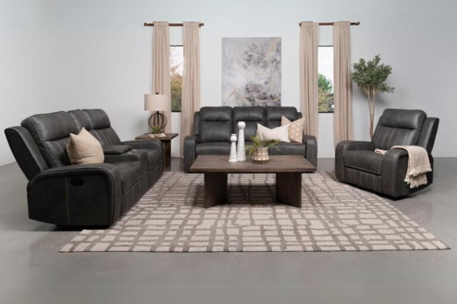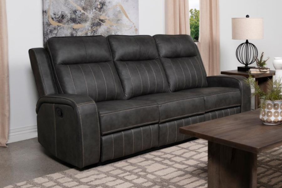 Raelynn Upholstered Track Arm Motion Sofa Grey 603191