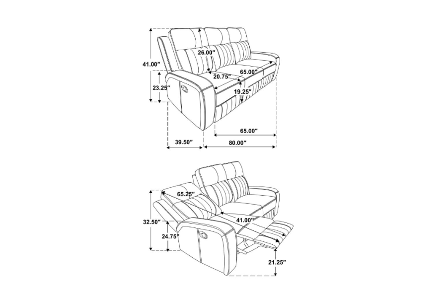 Includes: One (1) reclining sofa |