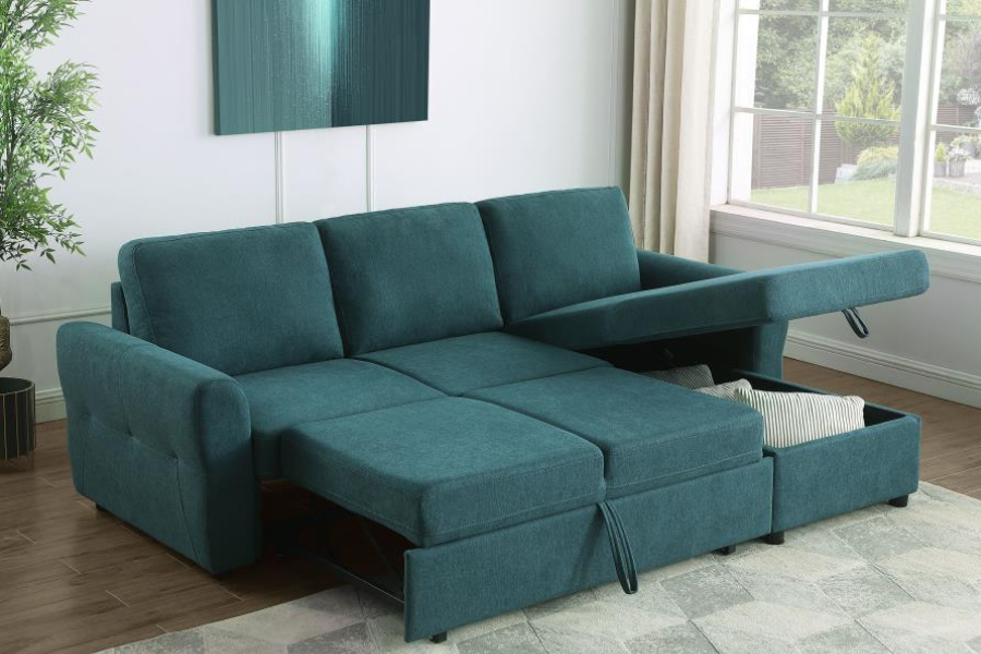 Samantha Upholstered Storage Sleeper Sectional Sofa Teal 511087